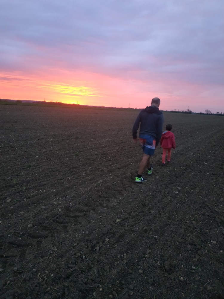 Sans trop respecter la distance des 1km. Promenade jusqu’à l’aire de St romans avant retour par les champs.