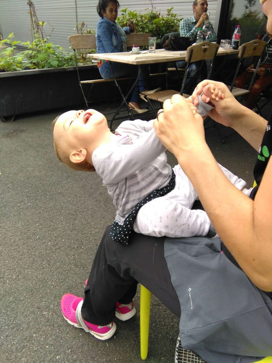 Une chouette soirée : une sortie précoce de la garderie, une balade en centre-ville où l’on croise un manège tout en couleurs et enfin un « repas » au fast-food. La belle vie !
