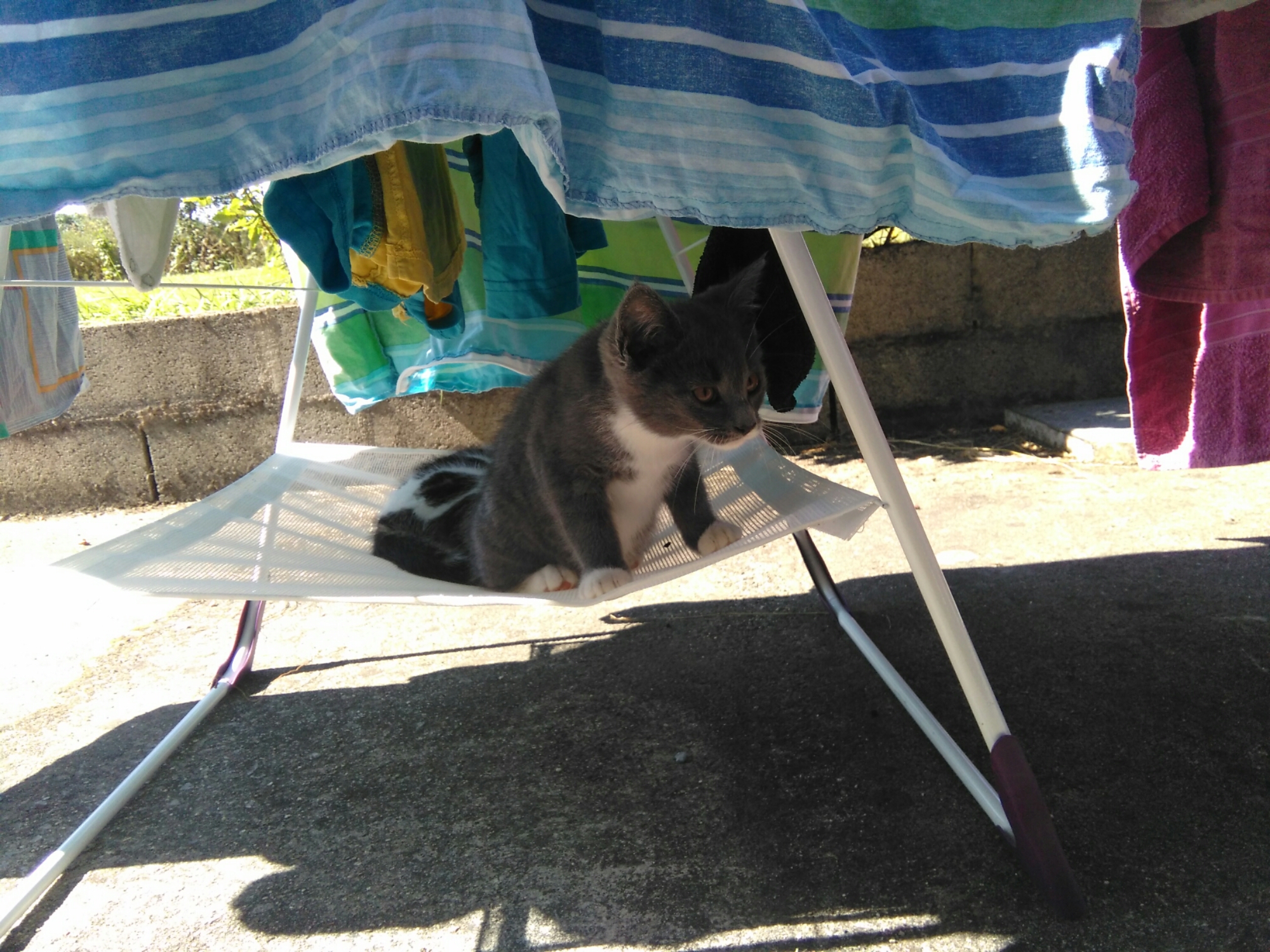 Un mur de bon matin à la maison, du bitume ce midi devant la piscine où progresse mon grand frère … et me voilà tout amochée !! :o