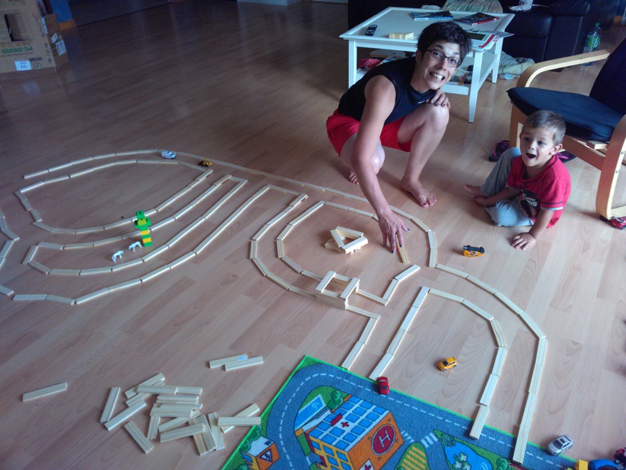Pourquoi faire petit quand on peut faire beaucoup? Alors nous, on fait beaucoup de routes, avec beaucoup de bûchettes et bientôt beaucoup de voitures!!